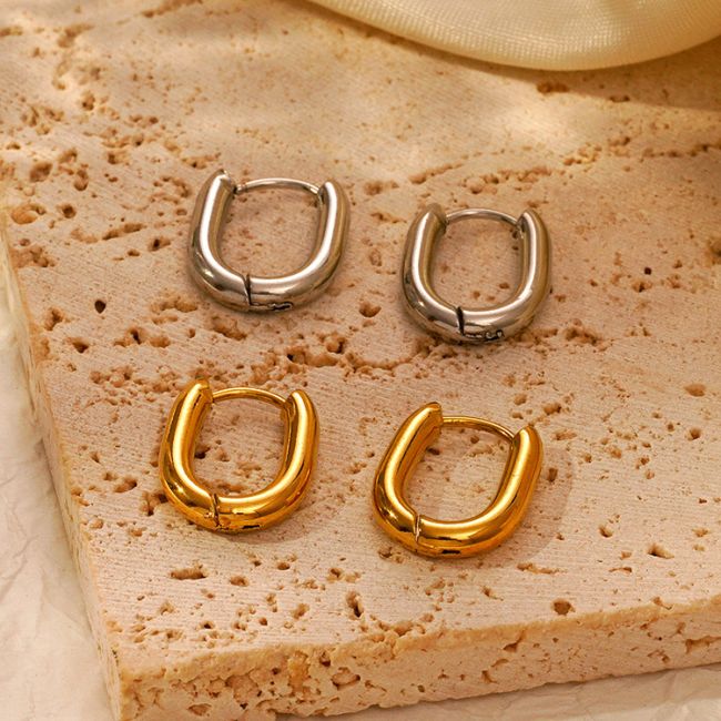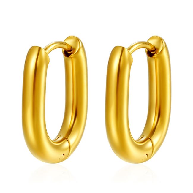 Geometric Oval Stainless Steel Earrings for Women - Trendy 18K Gold or Steel Tone Hoop Earrings