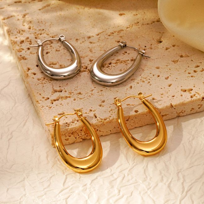 Geometric Oval Stainless Steel Earrings for Women - Trendy 18K Gold or Steel Tone Hoop Earrings