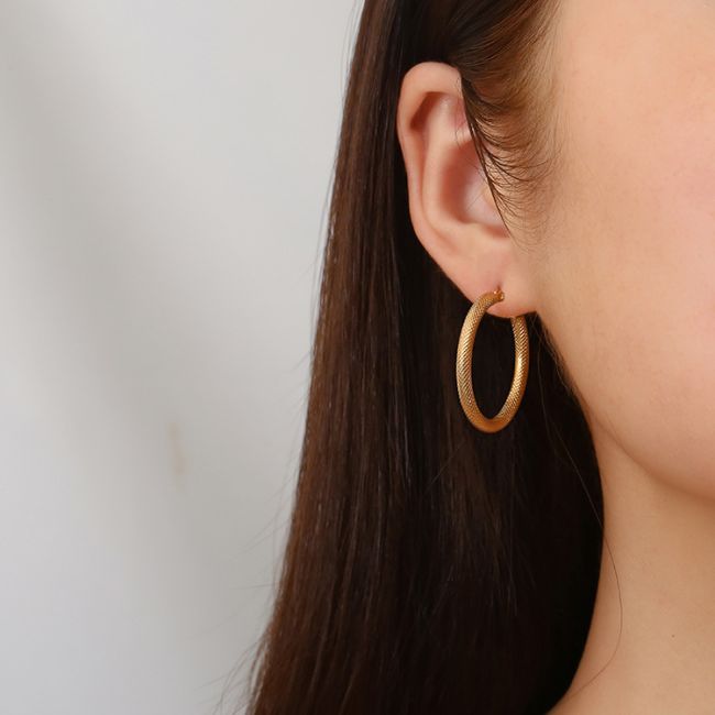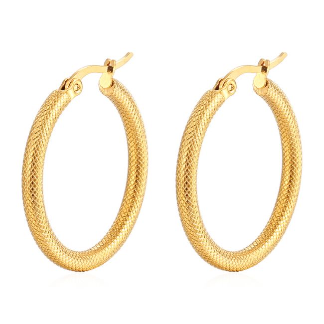 Geometric Patterned Round Stainless Steel Earrings for Women - 18K Gold Plated & Silver Tone