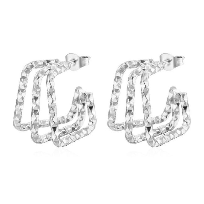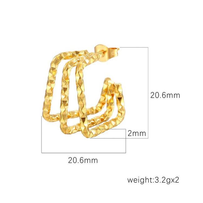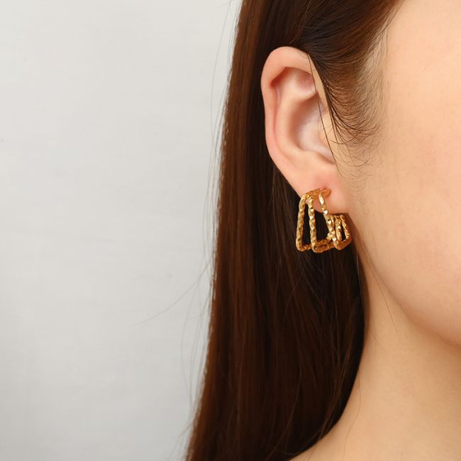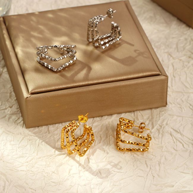 Geometric Patterned Square Stainless Steel Earrings for Women - Multi-Layered Gold & Silver Tone