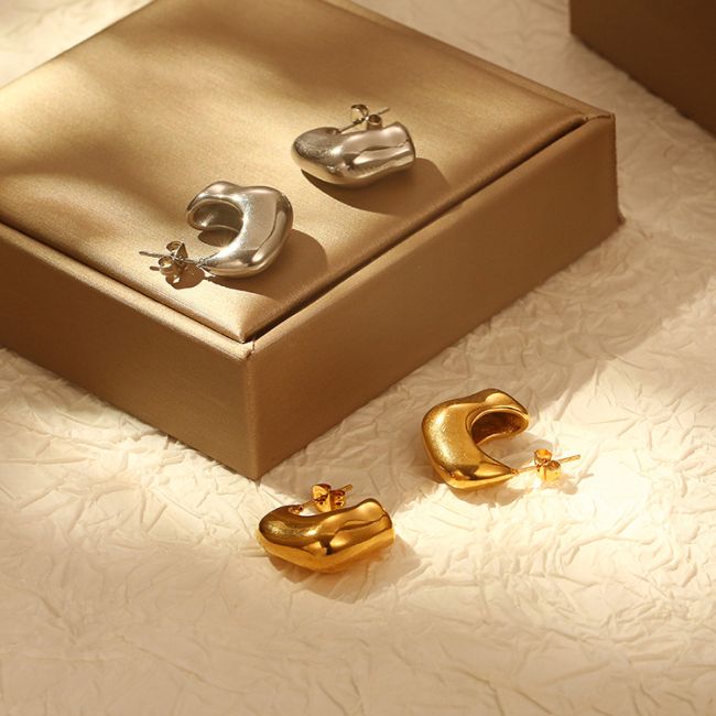 Geometric Smooth Stainless Steel Earrings for Women - Minimalist Modern Hoop Earrings with Irregular Shape