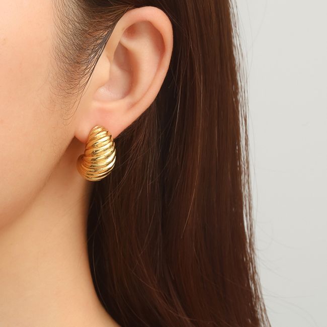 Stainless Steel Spiral Drop Earrings with Hollow Design and 18K Gold Plating