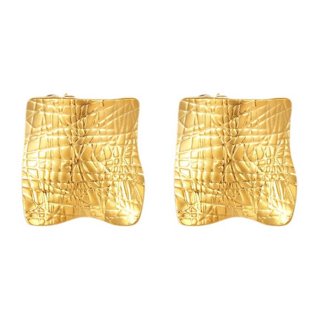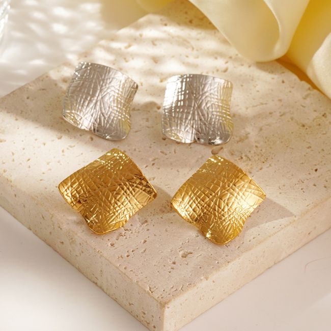 Geometric Square Folded Stainless Steel Earrings for Women - Modern Luxury Style