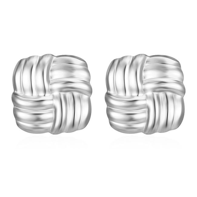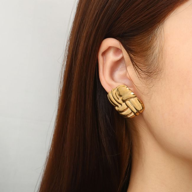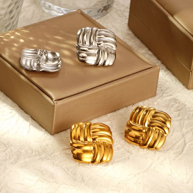 Geometric Square Striped Stainless Steel Earrings for Women - 18K Gold Plated Light Luxury Style