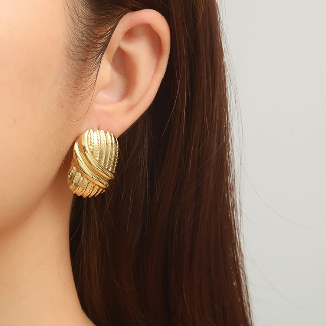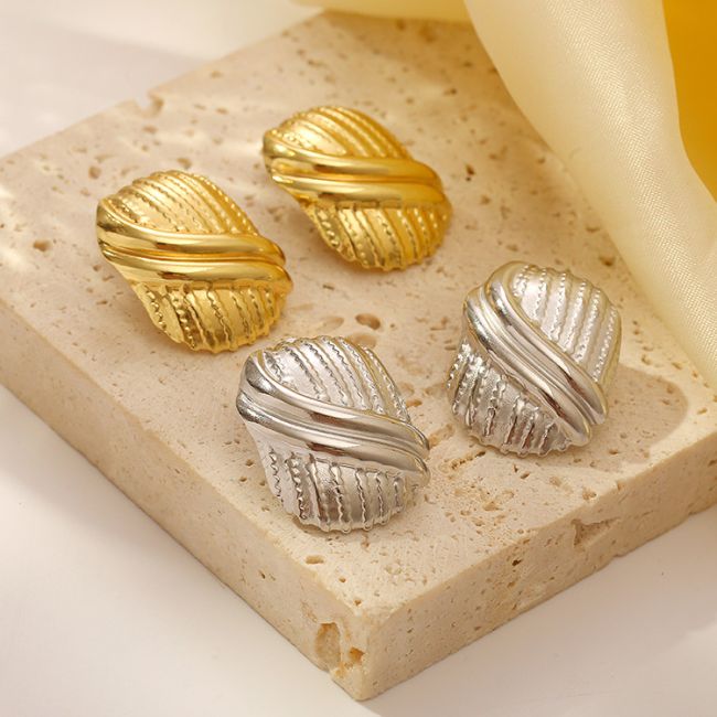 Geometric Square Striped Stainless Steel Earrings for Women - Trendy 18K Gold & Silver Tone