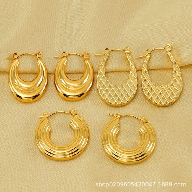 Geometric Stainless Steel Hoop Earrings for Women - Minimalist Round Gold-Plated Studs