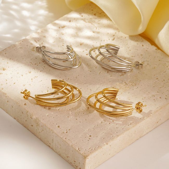 Geometric Stainless Steel Hoop Earrings with Smooth Finish