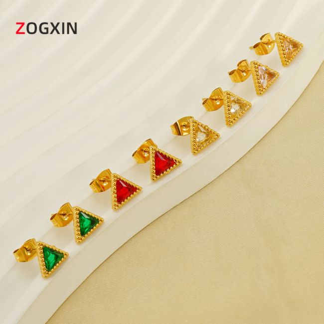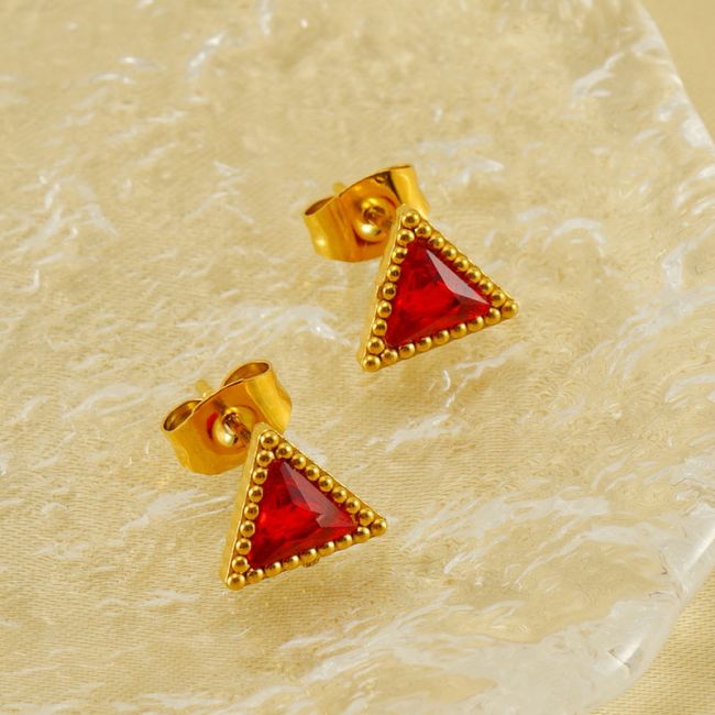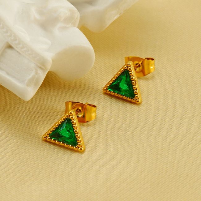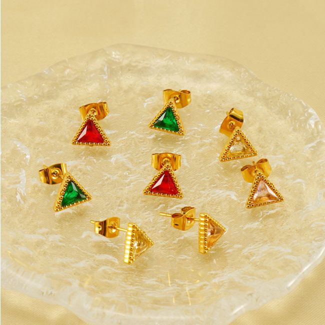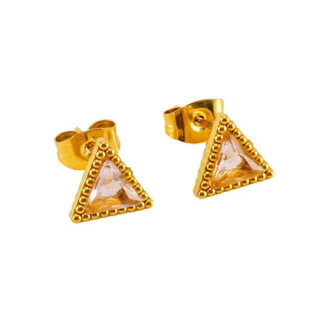 Geometric Triangle Stud Earrings with Zircon Stones in 18K Gold Plating