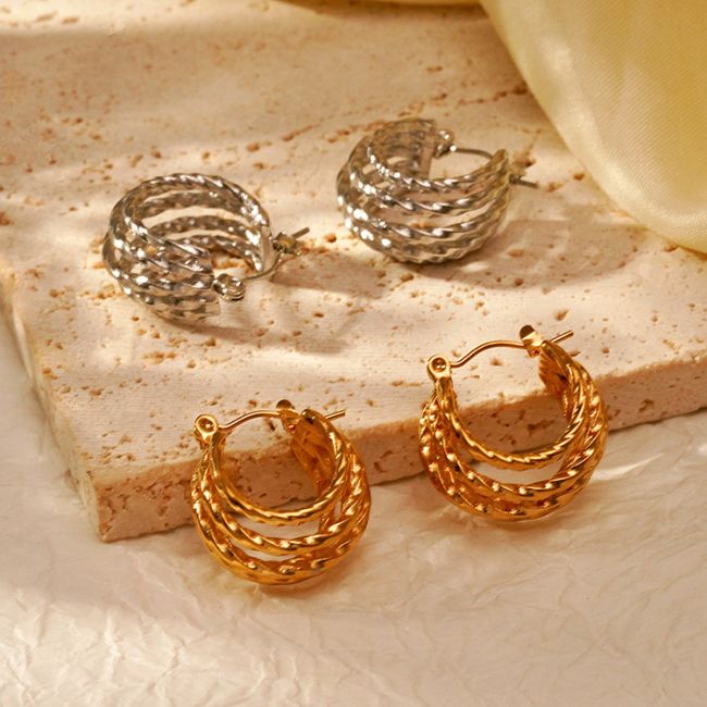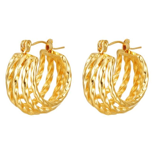 Geometric Twist Wire Stainless Steel Earrings with 18K Gold Plating