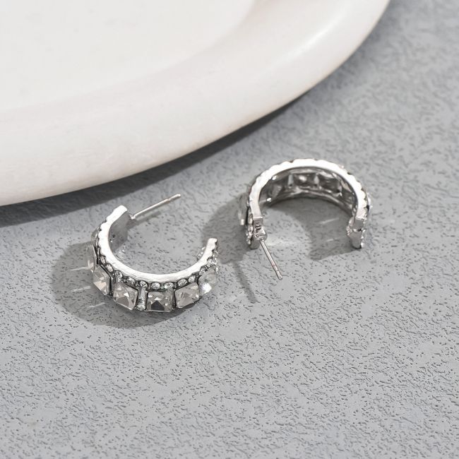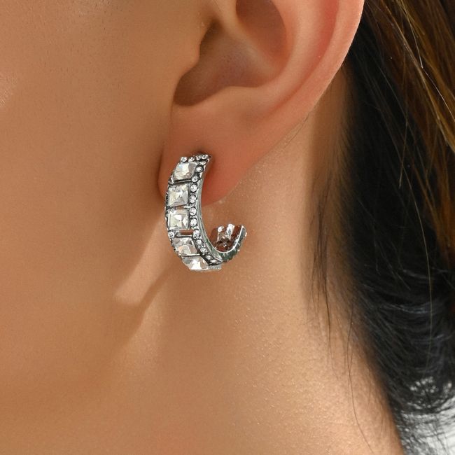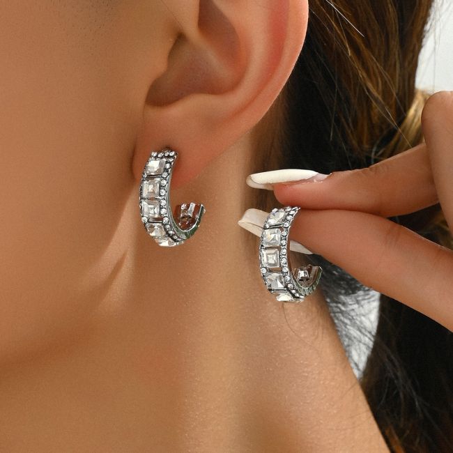 Geometric U-Shaped Stud Earrings with Cubic Zirconia Accents