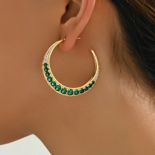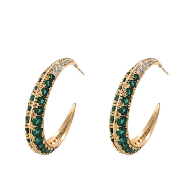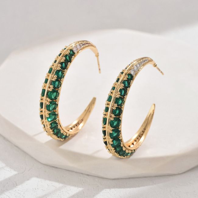 Geometric U-Shaped Stud Earrings with Emerald Crystals for Women