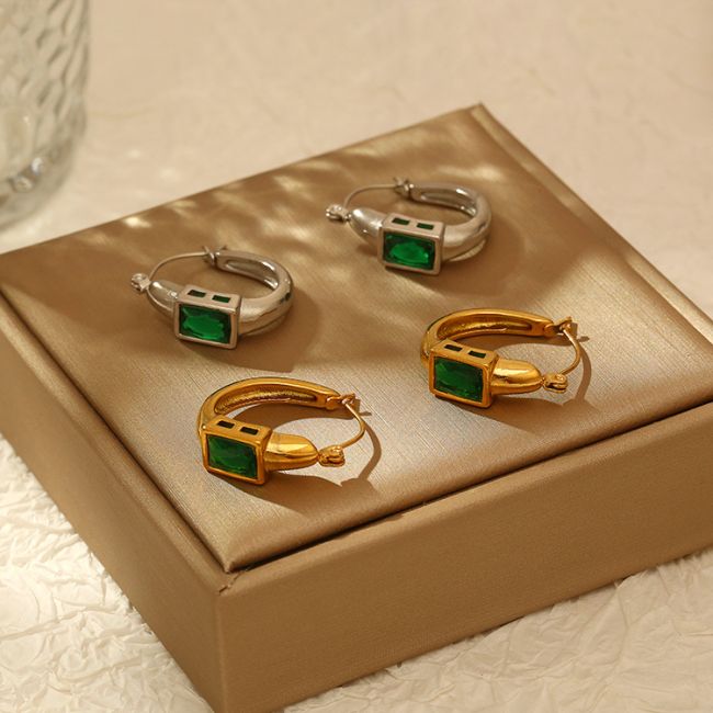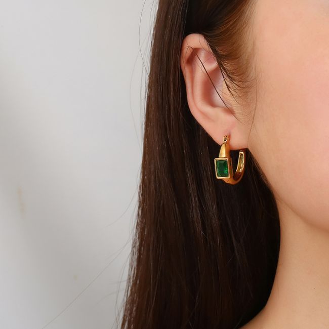 Geometric U-Shaped Stud Earrings with Shiny Cubic Zirconia in 18K Gold Plated Stainless Steel