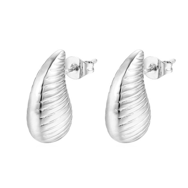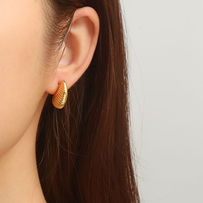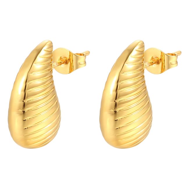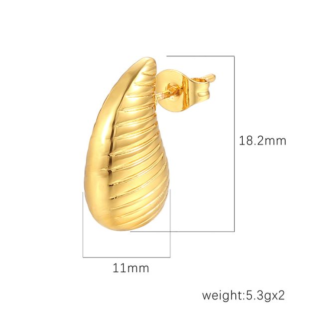 - Color Options: Striped teardrop design available in gold-tone and silver-tone