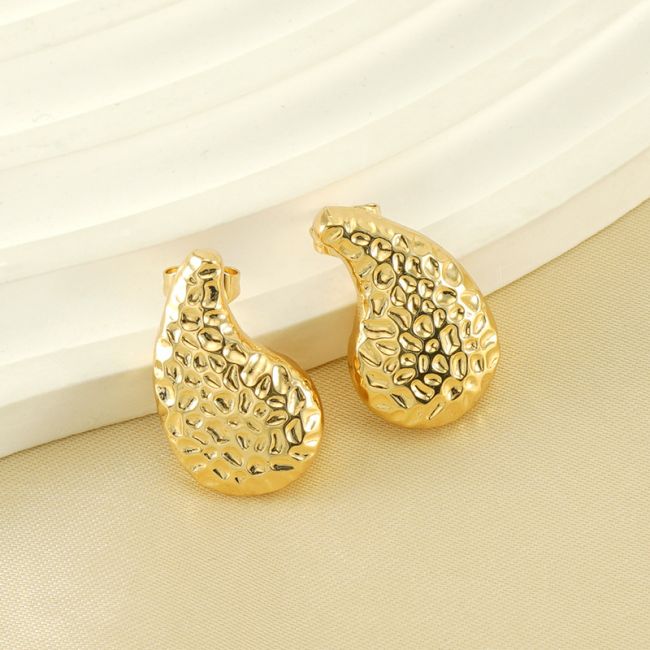 Hammered Teardrop Earrings - Elegant Stainless Steel Dangle Earrings for Women