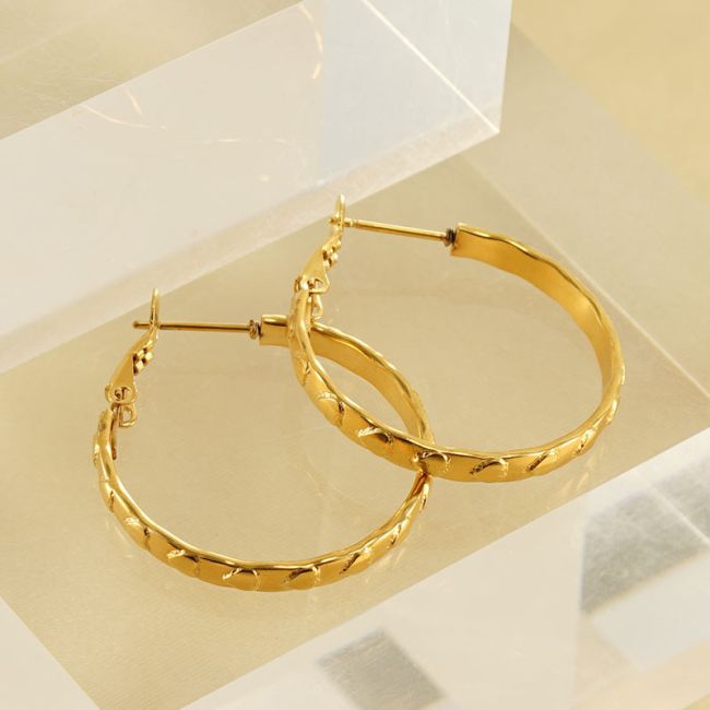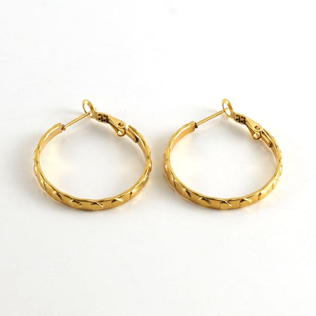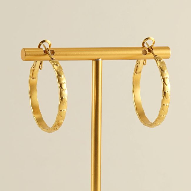 Heart Embossed Stainless Steel Earrings with 18K Gold Plating