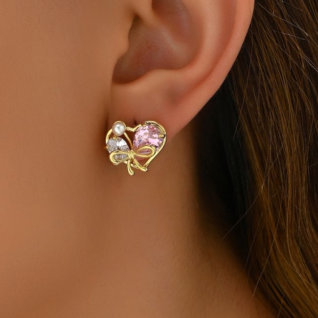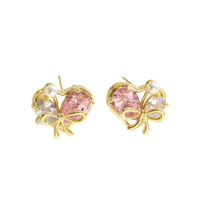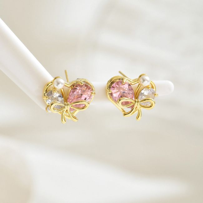 Heart-Shaped Cubic Zirconia Stud Earrings with Geometric Design for Women