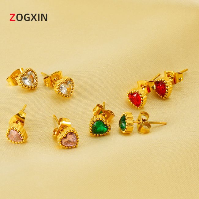 Heart-Shaped Stainless Steel Earrings with Zirconia for Women - Elegant and Versatile