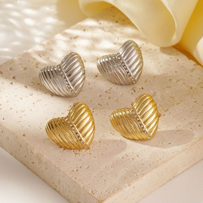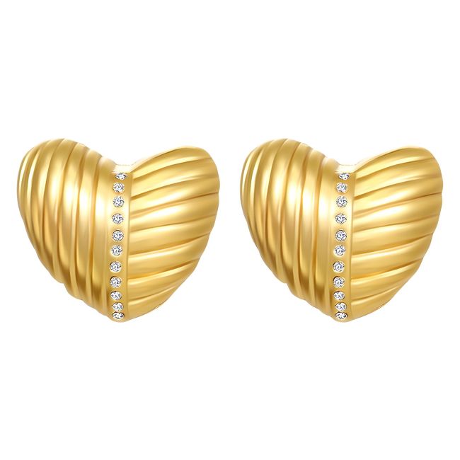 Heart-Shaped Stainless Steel Earrings with Zirconia Stones in Gold or Silver Tone