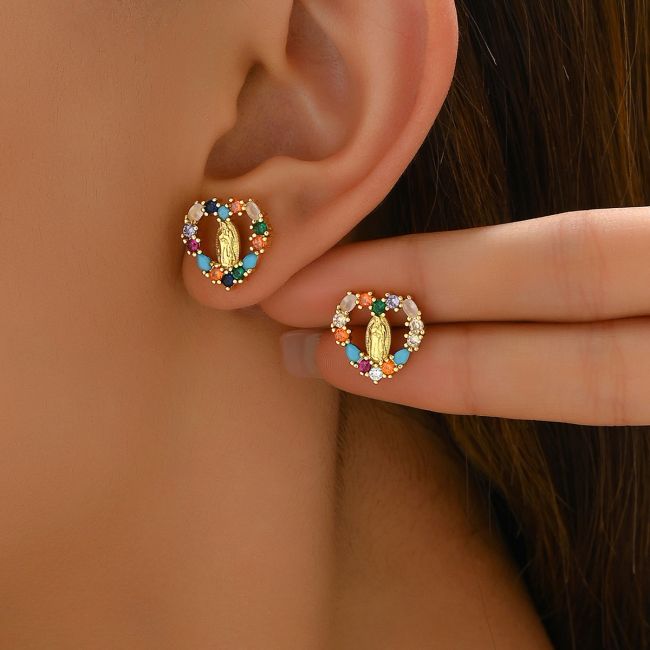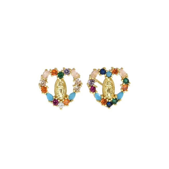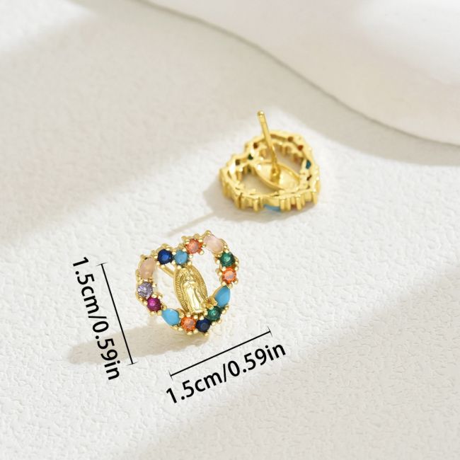 Heart-Shaped Stud Earrings with Colorful Zircon Stones in Geometric Design