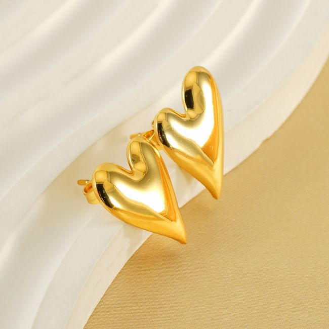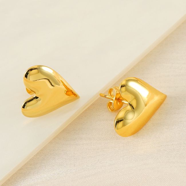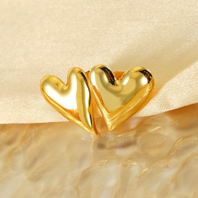 Heart Stud Earrings for Women - Stainless Steel Love Design with 18K Gold Plating