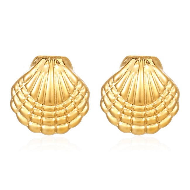 Hollow Shell Fan-Shaped Earrings in Stainless Steel with 18K Gold Plating