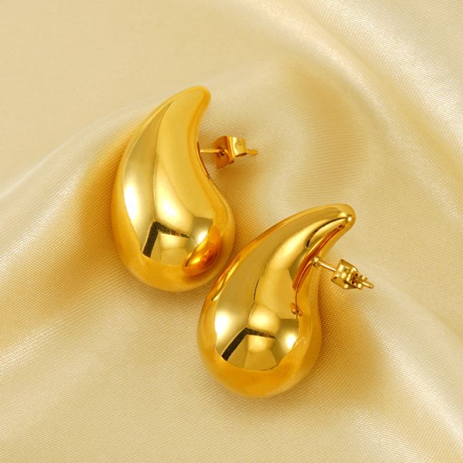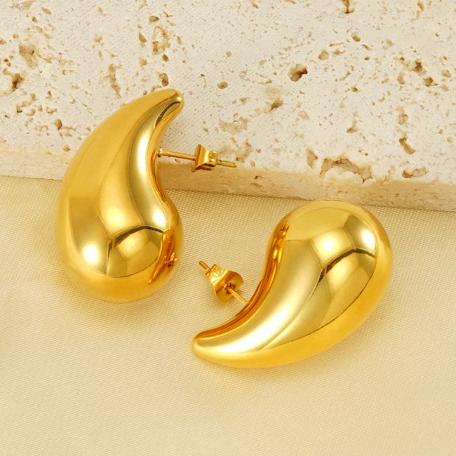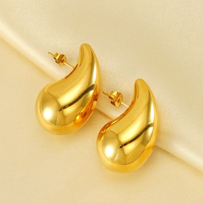 Hollow Teardrop Earrings in Premium 18K Gold Finish - Smooth Surface Drop Design