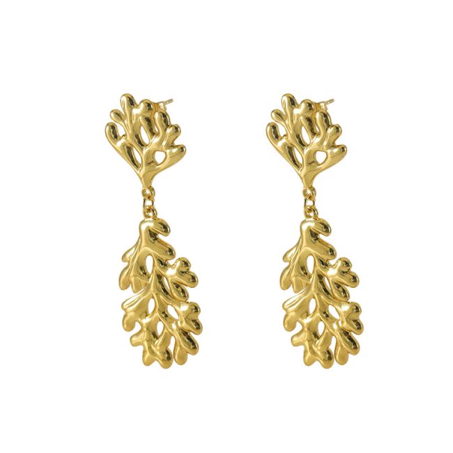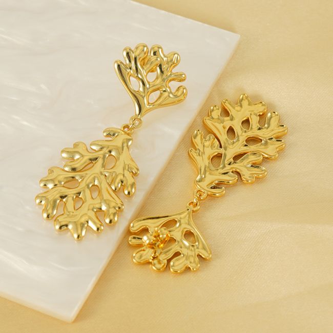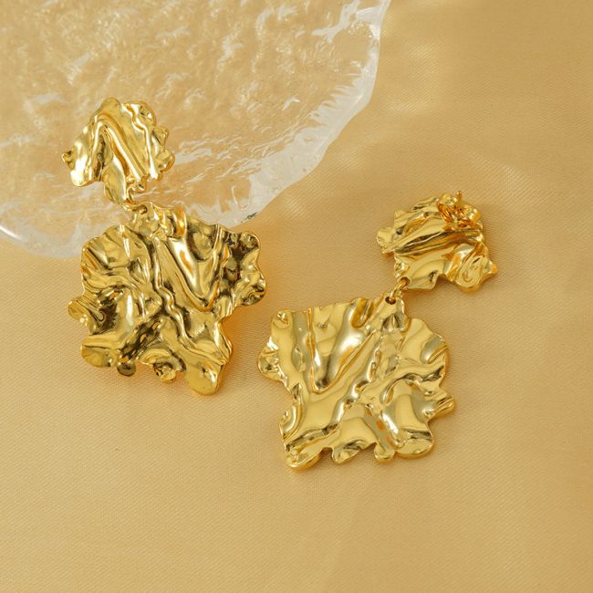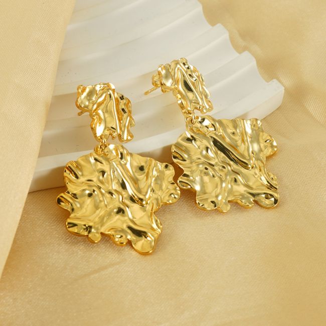 Leaf-Shaped Stainless Steel Drop Earrings with Irregular Lava Design and Hollow Out Detailing