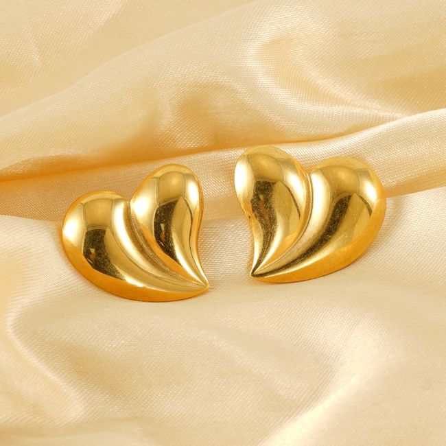 Vintage Gold-Plated Stainless Steel Heart Earrings for Women