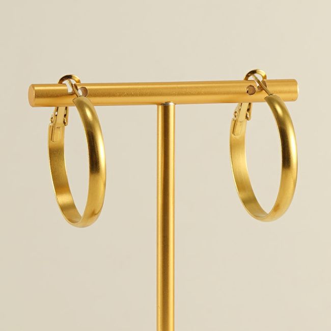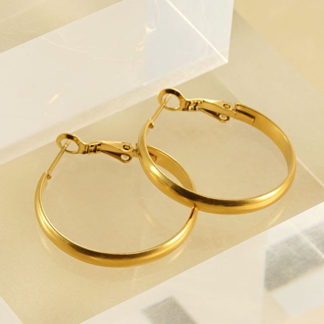 Modern Geometric Stainless Steel Hoop Earrings - Minimalist 18K Gold-Plated Design for Women