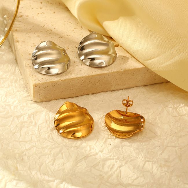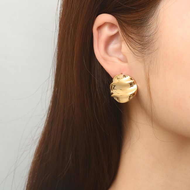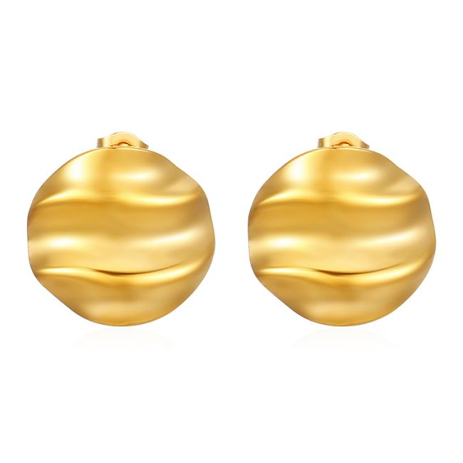 Modern Round Crinkle Stainless Steel Earrings for Women in Gold and Silver Tones