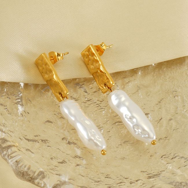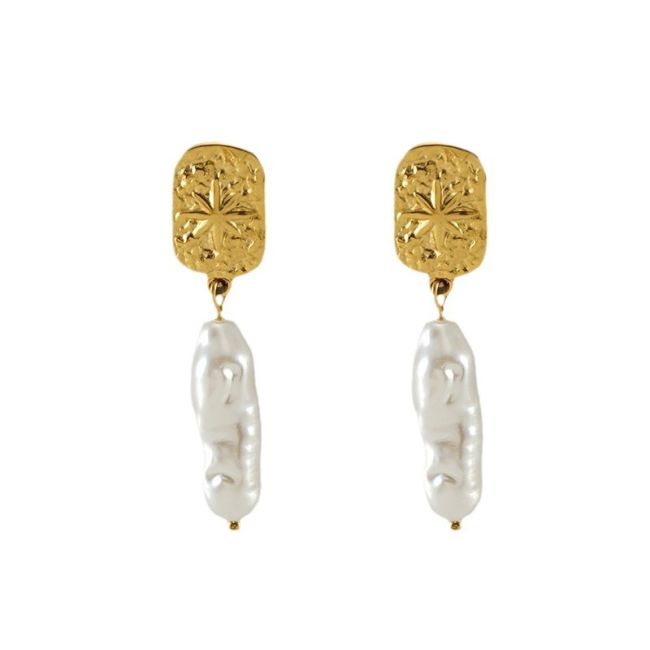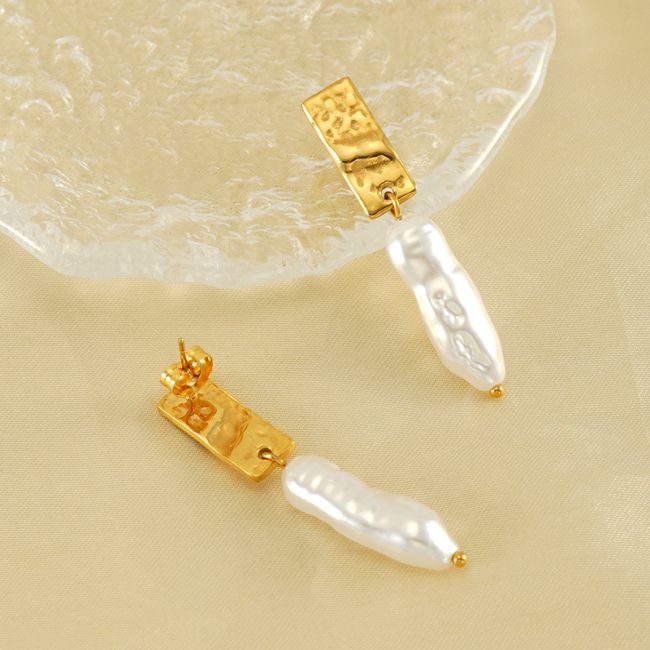 Pearl Geometric Drop Earrings in 18K Gold-Plated Titanium Steel for Women