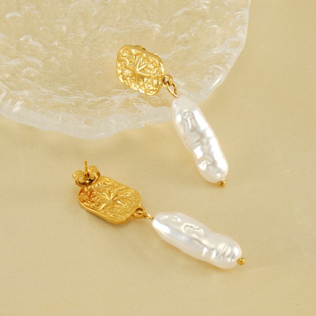 Pearl Stud Earrings in Stainless Steel with Geometric Design for Women