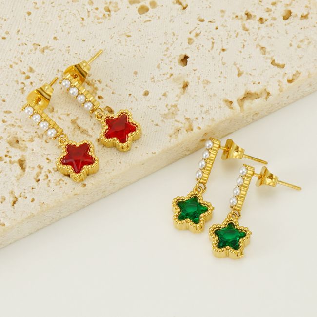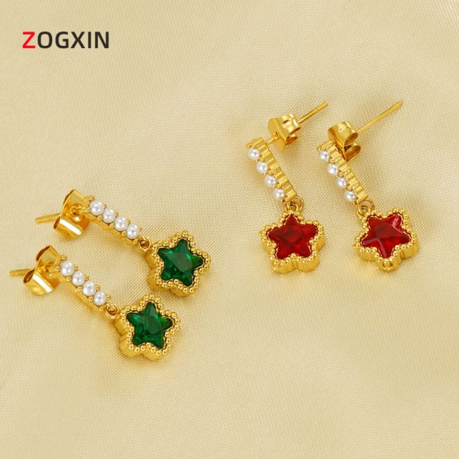 Pearl and Zircon Star Earrings in Stainless Steel for Women - 2023 New Arrival