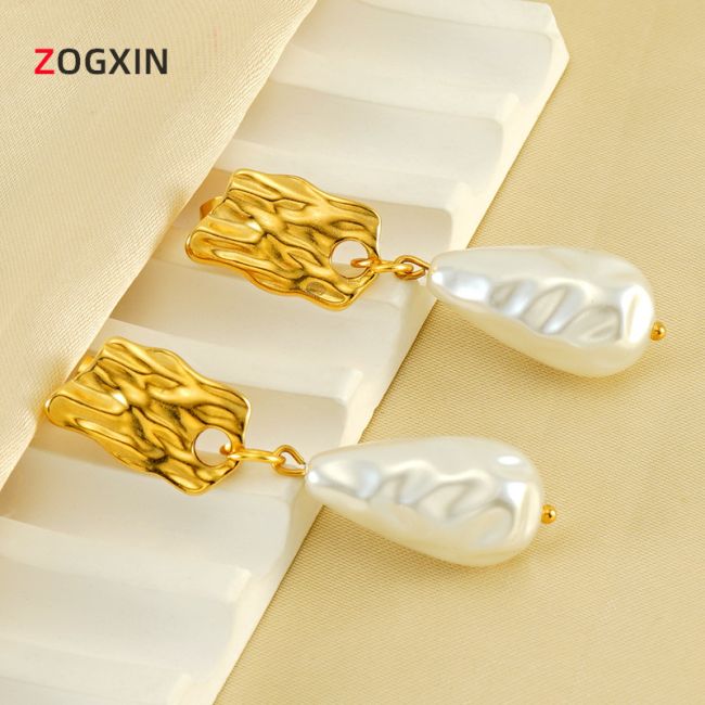 Pearl Geometric Drop Earrings in 18K Gold-Plated Titanium Steel for Women