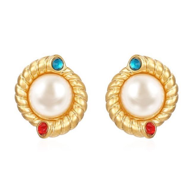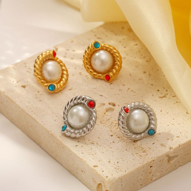 Pearl-Embedded Stainless Steel Earrings with French Court-Style 18K Gold Plating