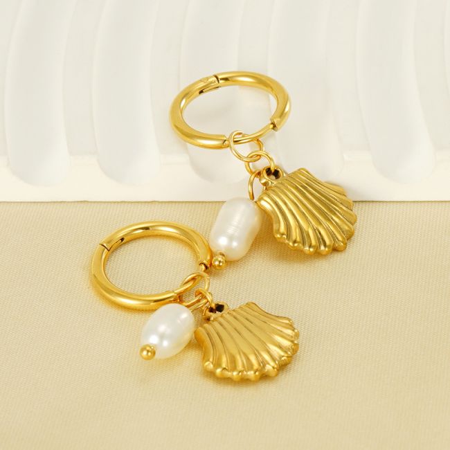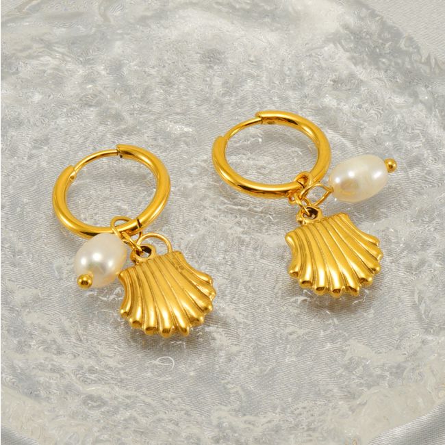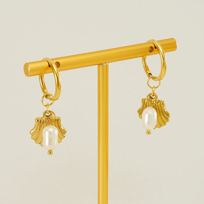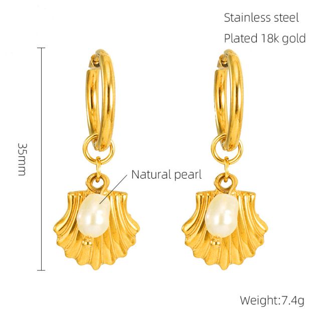 18K Gold Geometric Pearl Earrings with Stainless Steel for Women