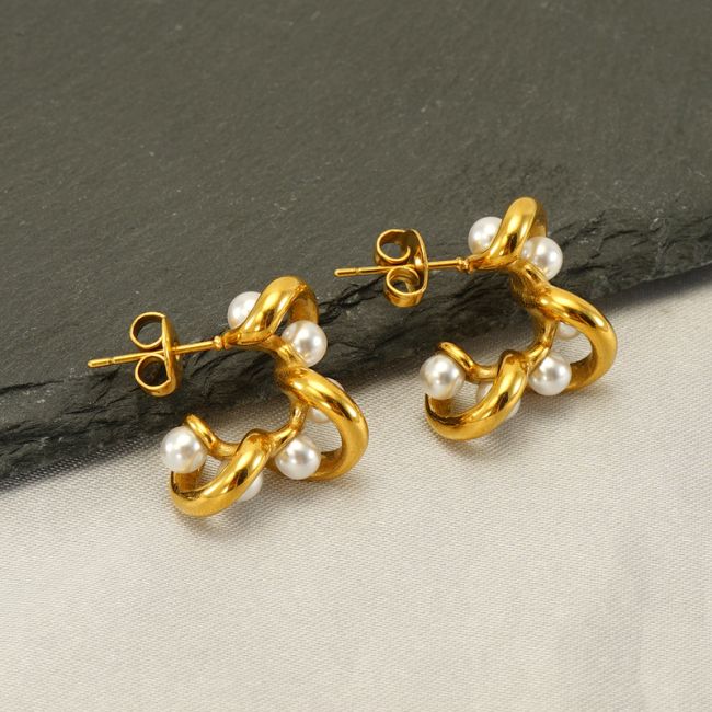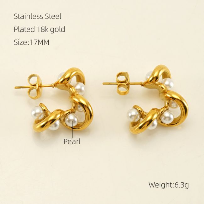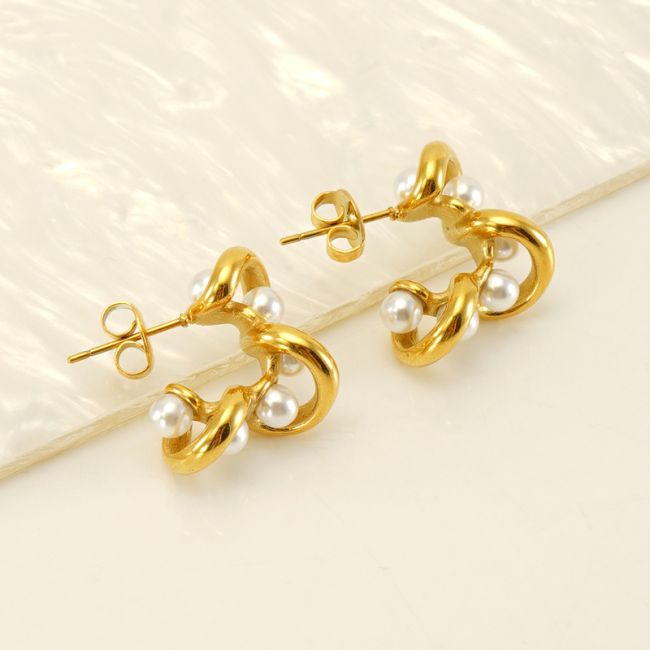Pearl Geometric Drop Earrings for Women - 18K Gold Plated French Style Titanium Steel Irregular Hoop Earrings