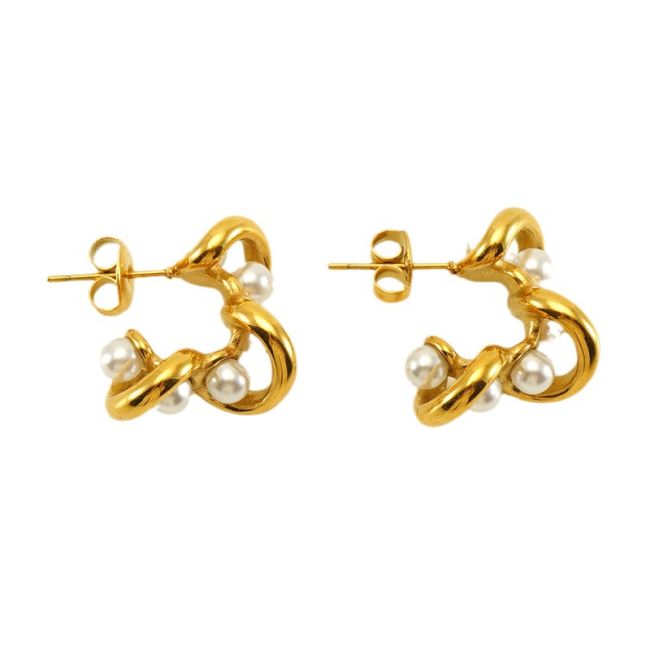 Pearl Pea Stud Earrings in 18K Gold Plated Stainless Steel for Women
