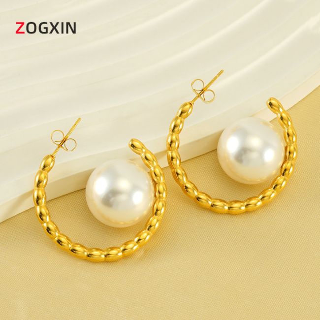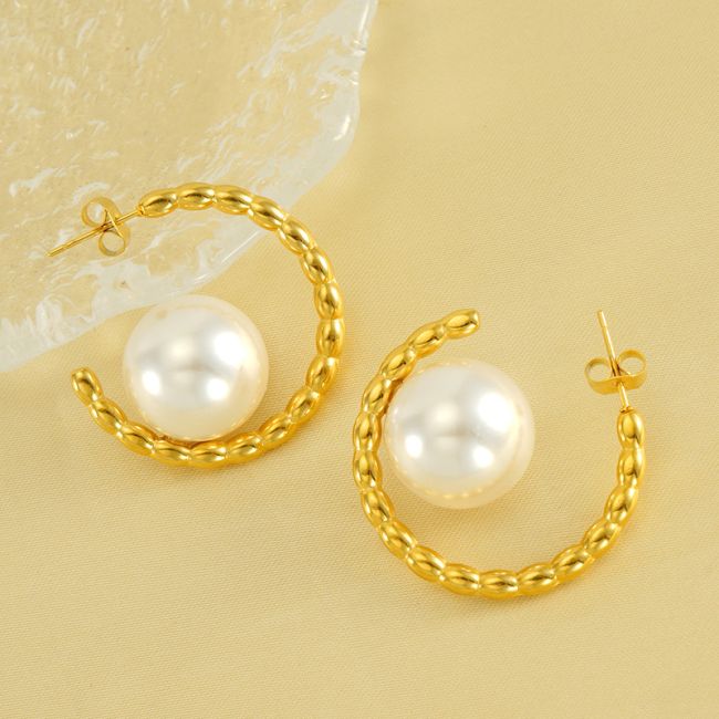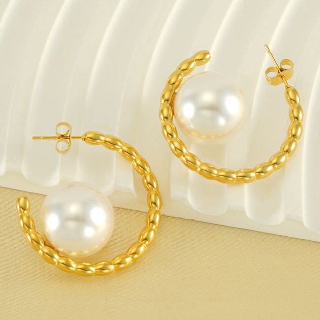Pearl Geometric Drop Earrings in 18K Gold-Plated Titanium Steel for Women
