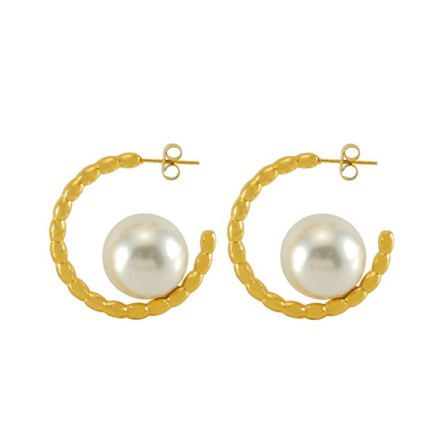Pearl Drop Earrings with Irregular Geometric Design in 18K Gold Plated Stainless Steel