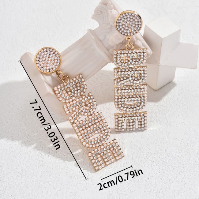 Pearl Stud Earrings with Minimalist Letter Design - Sweet and Fresh Style