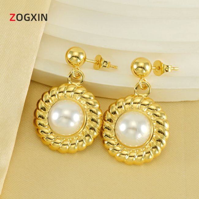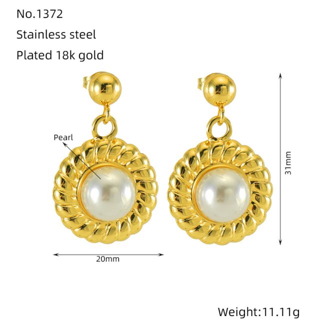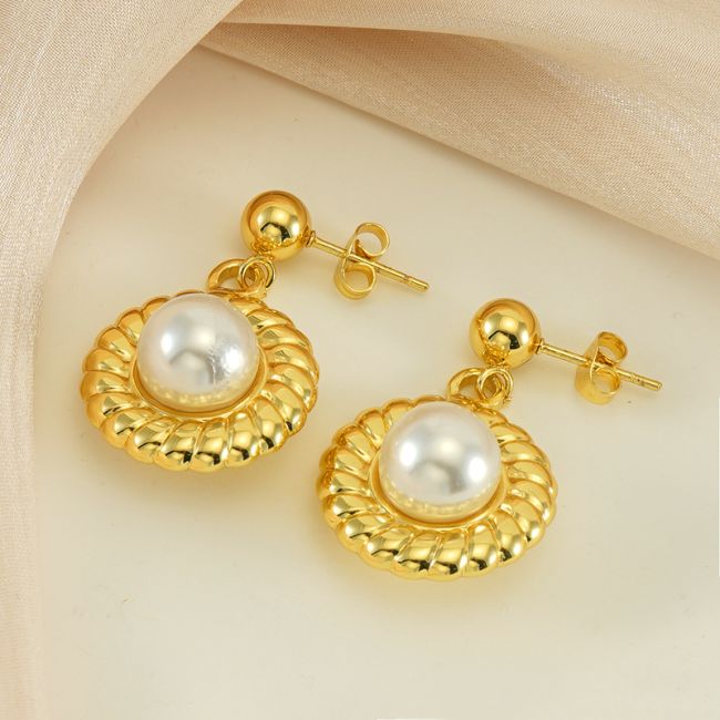 Pearl Stud Earrings in Stainless Steel with Geometric Design for Women
