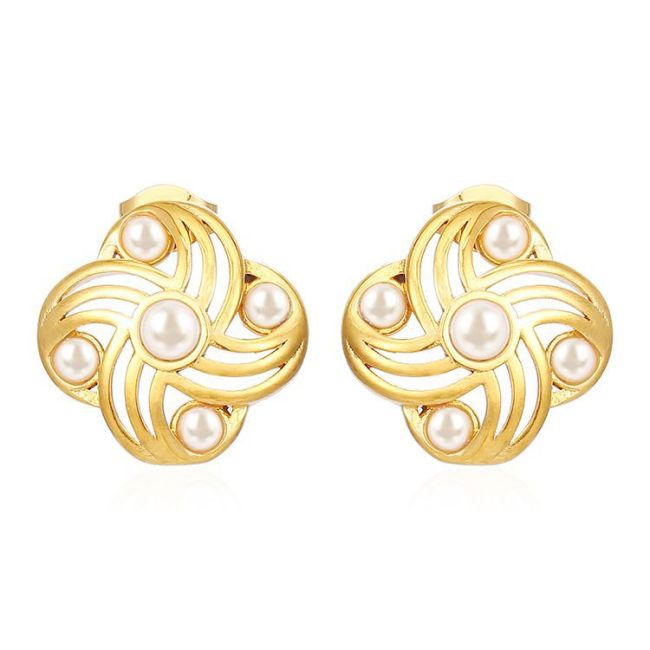 - Design: Unique windmill-inspired geometric shape with pearl accents