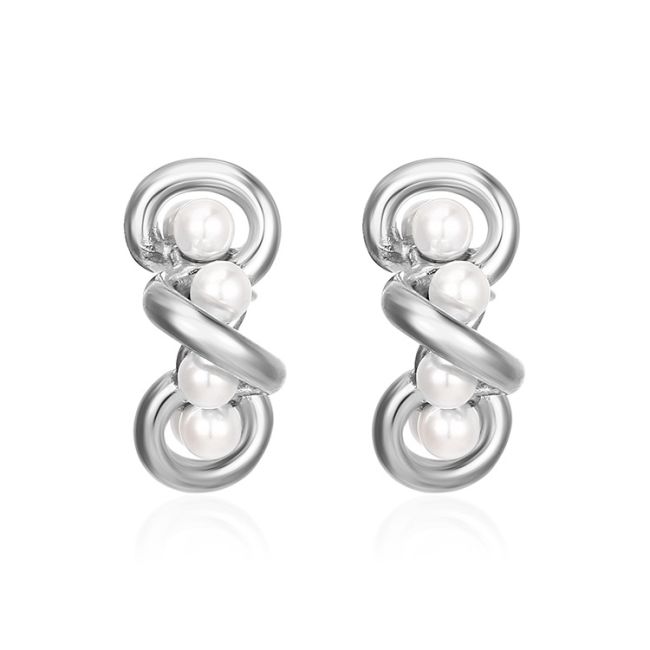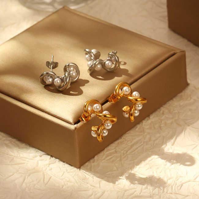 Pearl Wrapped Stainless Steel Earrings for Women - Irregular French Vintage Style with 18K Gold Plating