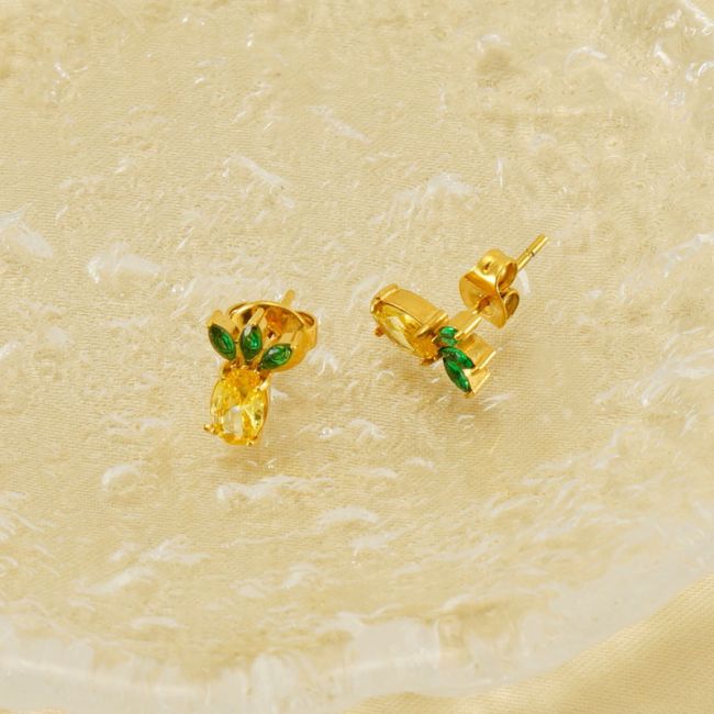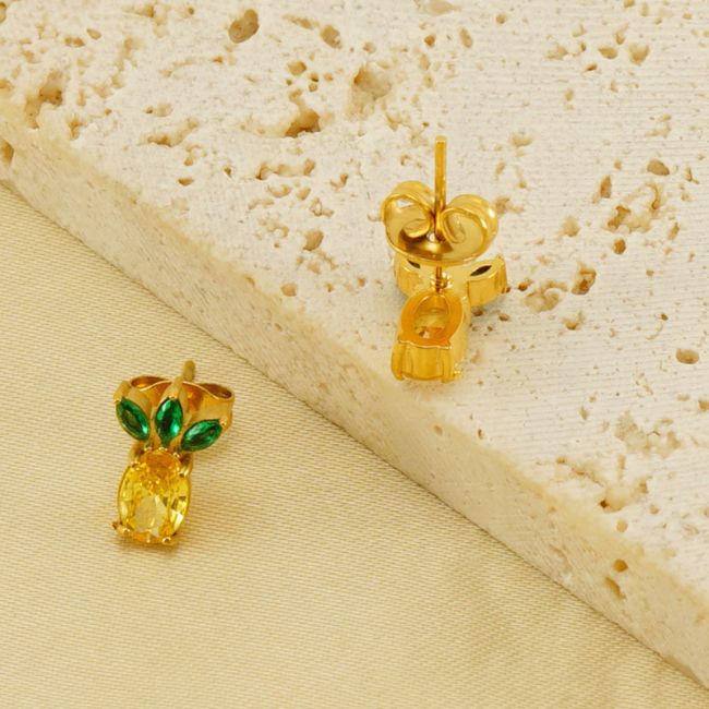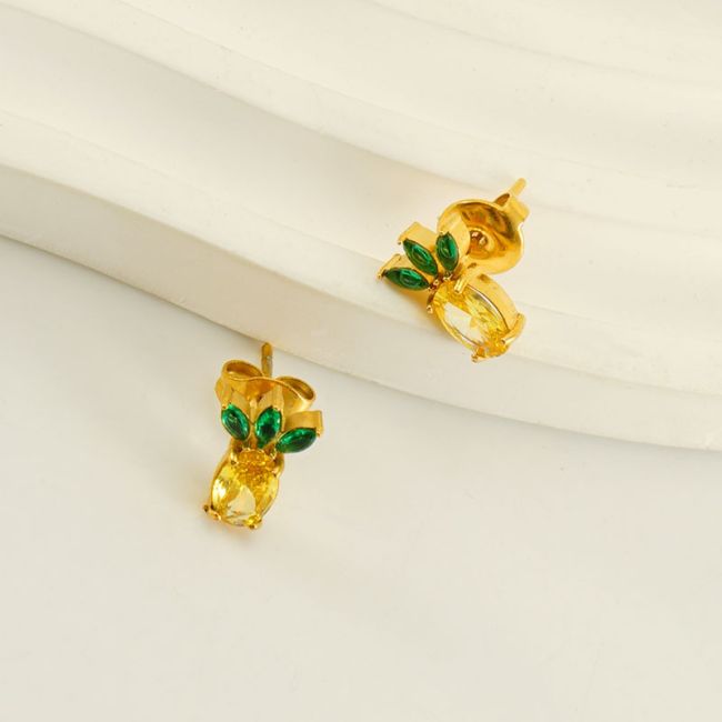 - Design: Playful pineapple-shaped studs with sparkling zircon accents