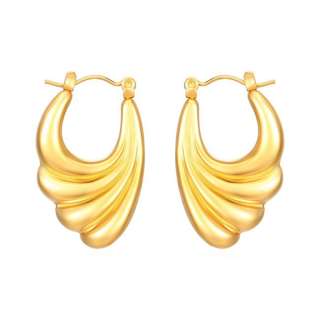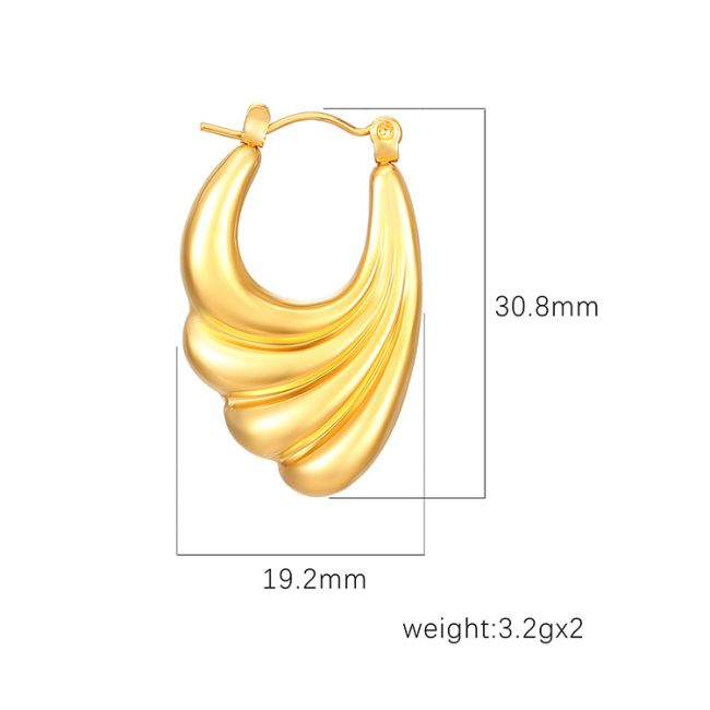 Retro Luxury Geometric Wave and Wing Design Stainless Steel 18K Gold Plated Earrings