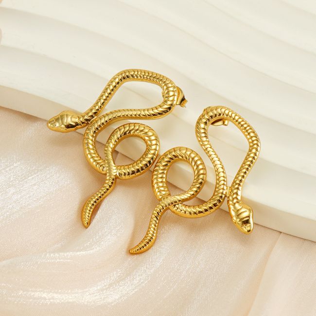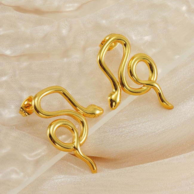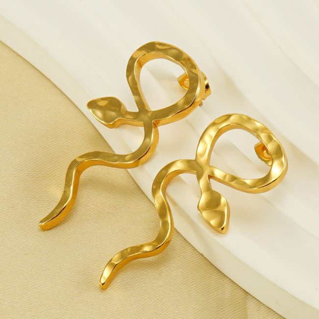 Snake-Inspired Geometric Drop Earrings for Women - 18K Gold Plated Stainless Steel Fashion Statement Jewelry