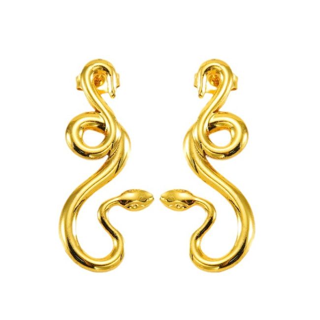 Snake Design Stainless Steel Gold-Plated Hoop Earrings