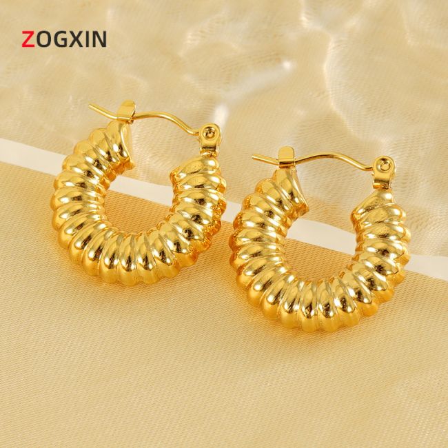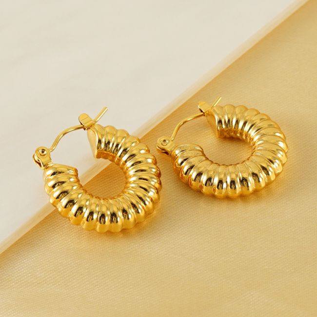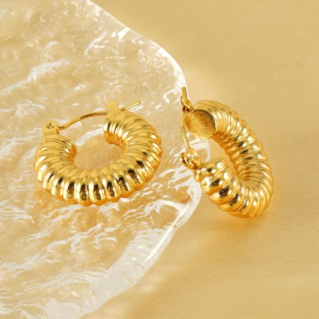 Spiral C-Shaped Titanium Steel Earrings for Women - 18K Gold Plated Geometric Hoop Earrings