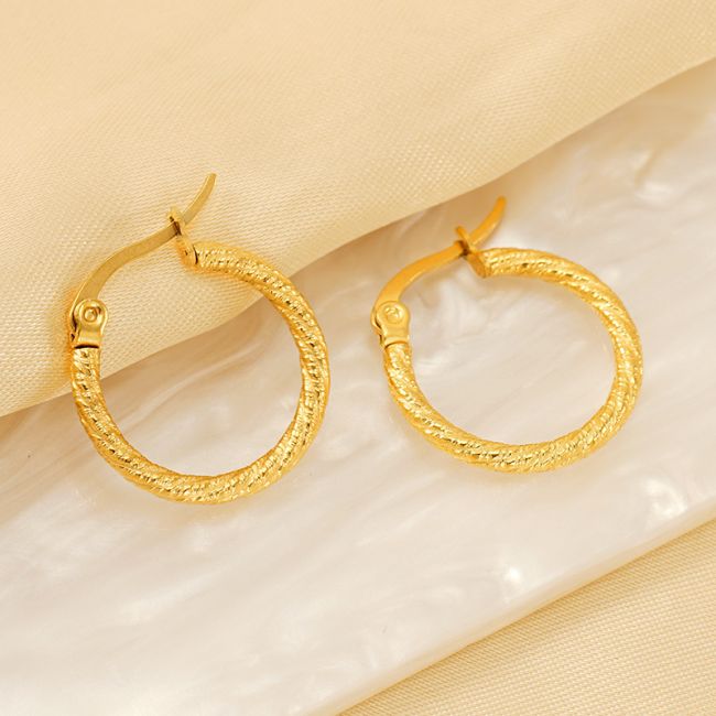 Spiral Pattern Gold-Plated Round Hoop Earrings for Women